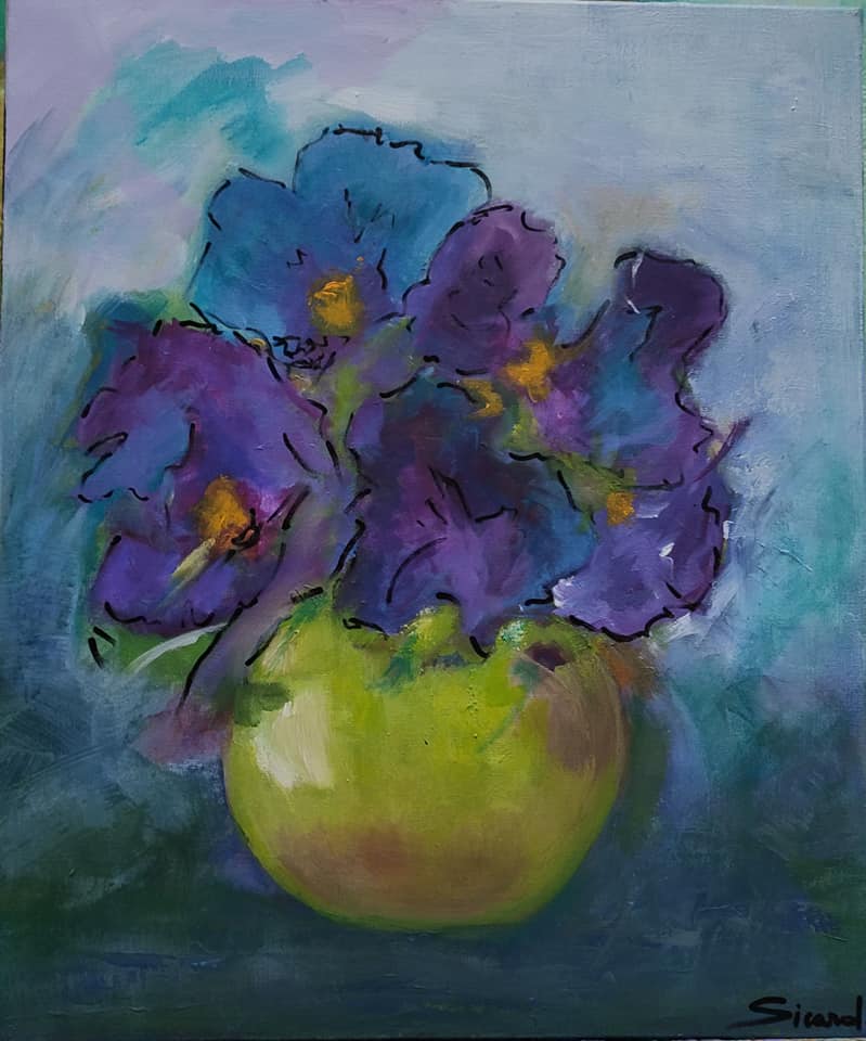 Collection Peintures Figuratives C’est le printemps 35×45Hortensias 40×50Bonne fête 40×40Le jardin 100×80Fleurs bleues 46×55Iris 40 x 50Romantique 30 x 40Pivoines 35 x 45Marchè aux fleurs 100 x 81Vase bleue 46×55Bouquet 1 30 x Capucine 30 x 40Bouquet du soir 40 x 50Bouquet d’automne 46 x 55Tulipes 100 x 81La Ponche 100×80Voile rouge 54×73Ailleurs 2 50×50VenduEssaouira 92 x 60Paysage breton 30 x 40Paysage 3 50×50Paysage 2 50 x 50Afrique 50 x 50Paysage 1 50 x 50
